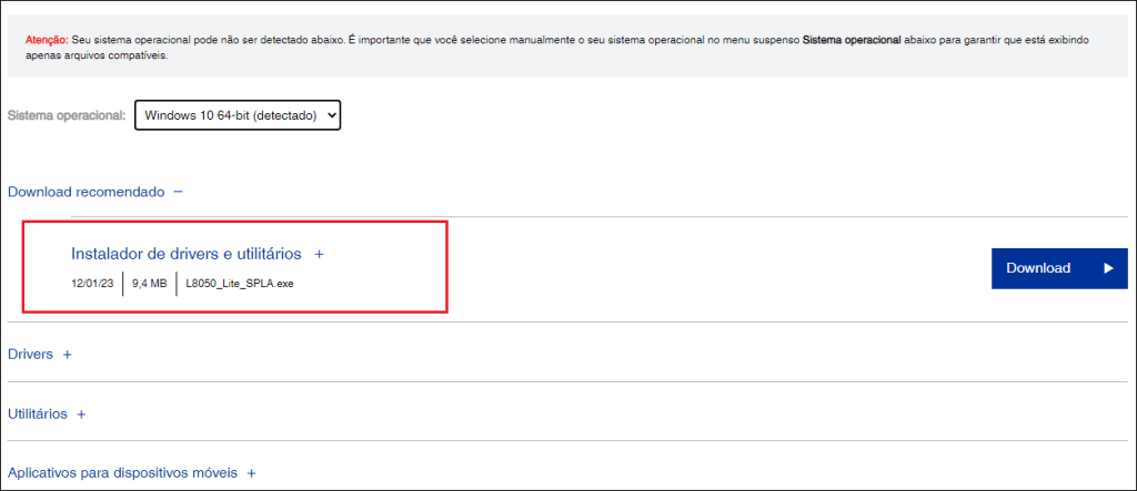 Trong trang chủ của epson, chọn đúng phiên bản driver mà máy tính cần cài đặt