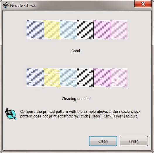 - In test nozzle để kiểm tra kết quả: nếu tia ra đều, bản in ổn định thì có thể tiếp tục sử dụng.